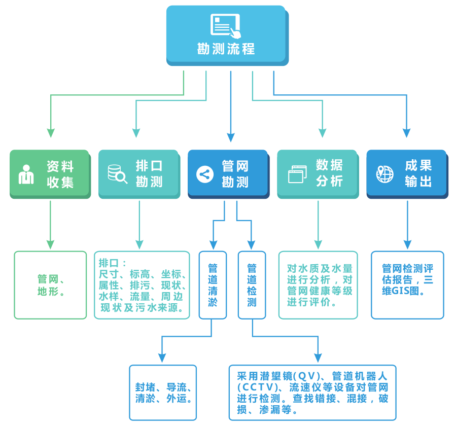 圣禹擁有豐富的河湖流域及管網(wǎng)勘察經(jīng)驗,可以對河湖流域排口管網(wǎng)進(jìn)行詳細(xì)勘察,包括排口水質(zhì)水量、地下管線管徑、埋深、流向等GIS數(shù)據(jù)采集、污水來源調(diào)查、管網(wǎng)錯接混接點(diǎn)精準(zhǔn)摸排定位等。