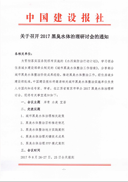 具體參會事宜可參見以下《關(guān)于召開2017黑臭水體治理研討會的通知》