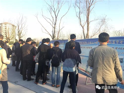 圣禹排水工作人員為參會(huì)代表講解項(xiàng)目情況