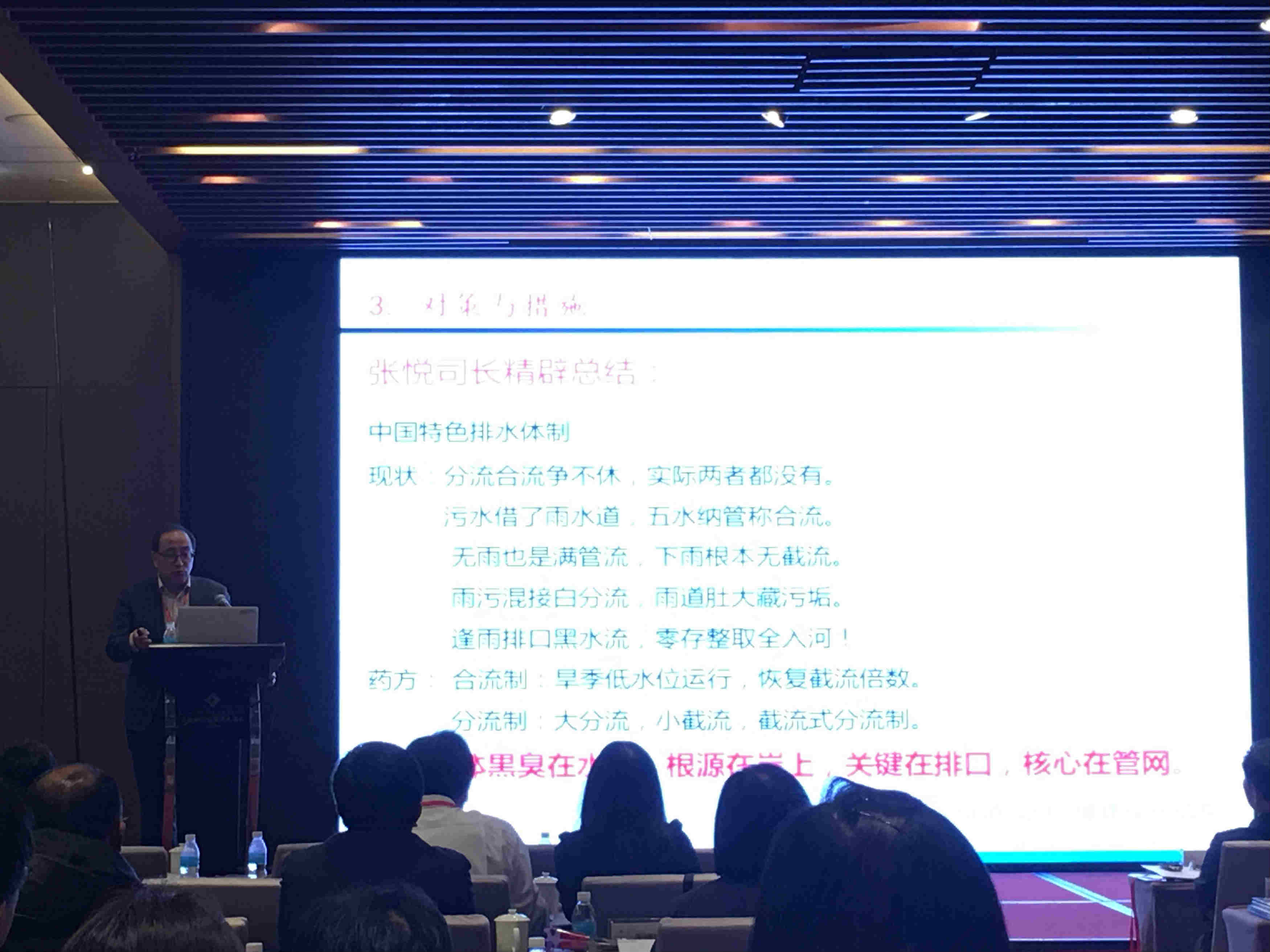 上海市城市建設(shè)設(shè)計(jì)研究總院(集團(tuán))有限公司總工唐建國(guó)發(fā)表《完善城市排水系統(tǒng),鞏固和提升黑臭水體整治成效》主題演講