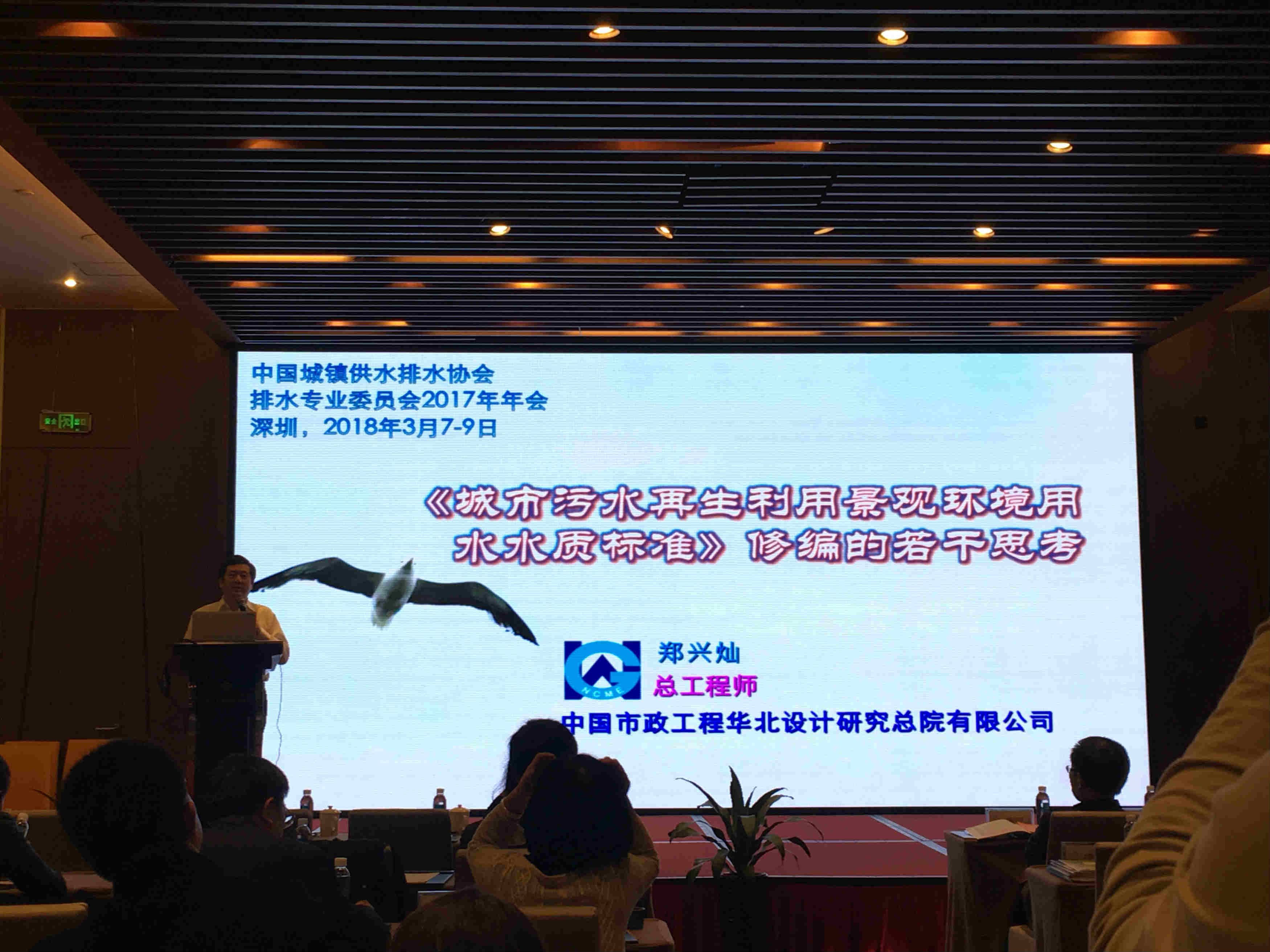 中國(guó)市政工程華北設(shè)計(jì)研究總院有限公司總工鄭興燦發(fā)表《城市污水再生利用景觀環(huán)境用水水質(zhì)標(biāo)準(zhǔn)》修編的若干思考主題演講