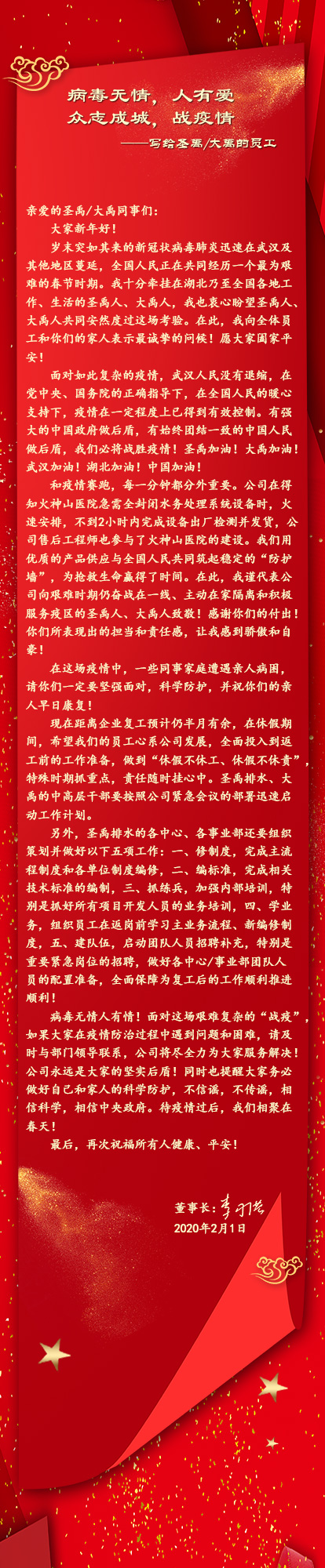 新春到,送祝福,圣禹排水先向您道一聲春節(jié)愉快!在這個特殊的春節(jié),“武漢”這座城牽動了全球無數(shù)人的心,從習(xí)近平總書記到黨中...