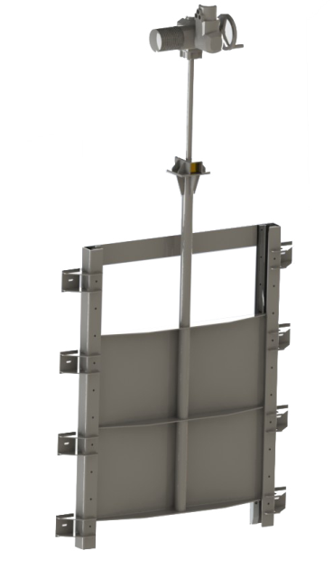 下開式閘門是一種依靠電力或液壓驅(qū)動,閘板向下運(yùn)動開啟的閘門。下開式閘門主要用于截流井、排河口、排污口等位置用于截流、調(diào)節(jié)上游水位、流量控制、防倒灌等功能。